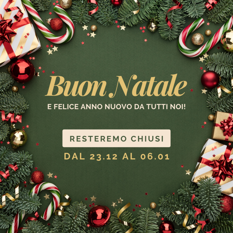 In occasione delle festività natalizie, i nostri uffici rimarranno chiusi per ferie dal 23/12/2024 al 06/01/2025 compresi. Per garantire la consegna prima della chiusura, è