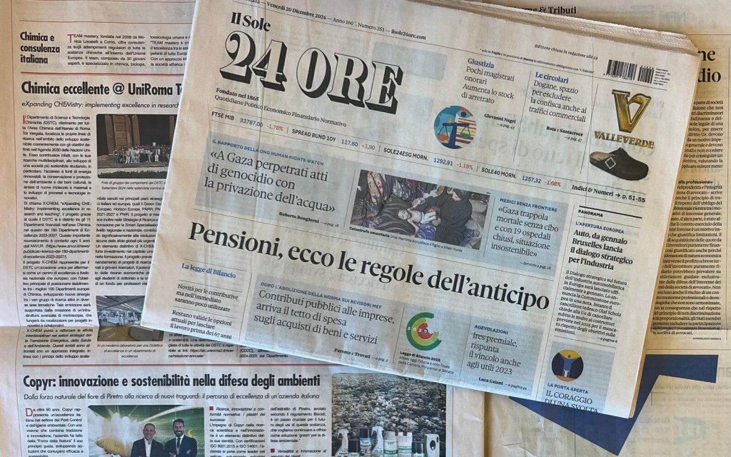 Nella giornata di oggi, 20 dicembre 2024, su Il Sole 24 Ore nella sezione “CHIMICA – Realtà Eccellenti” è presente un publiredazionale dedicato a Copyr .