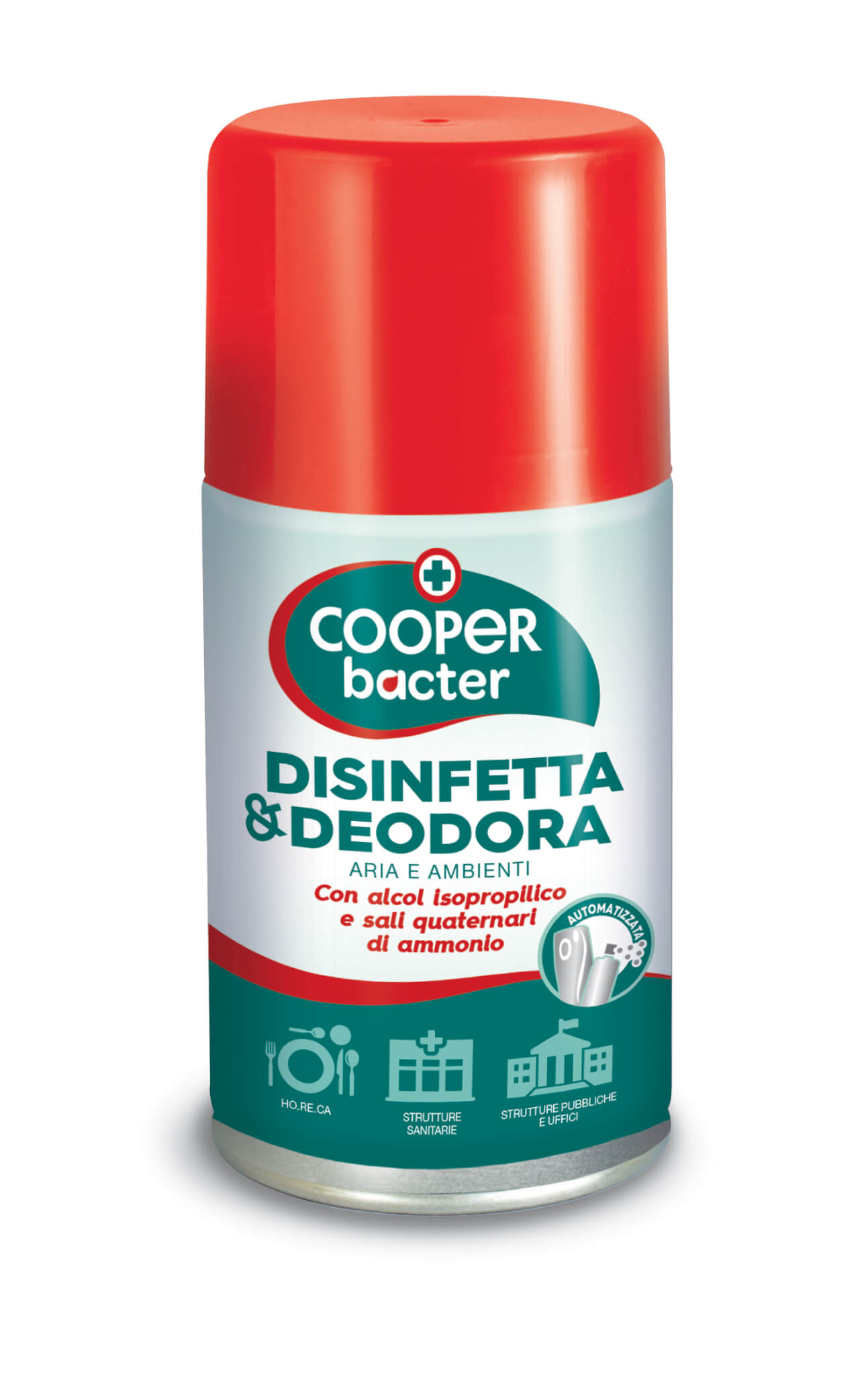 COOPERBACTER DISINFECTANT DEODORATES AIR AND ROOMS It is a germicide for the defence against airborne bacteria. For use in hospitals, clinics, communities, schools, gyms, factories and all places where antibacterial action is required.