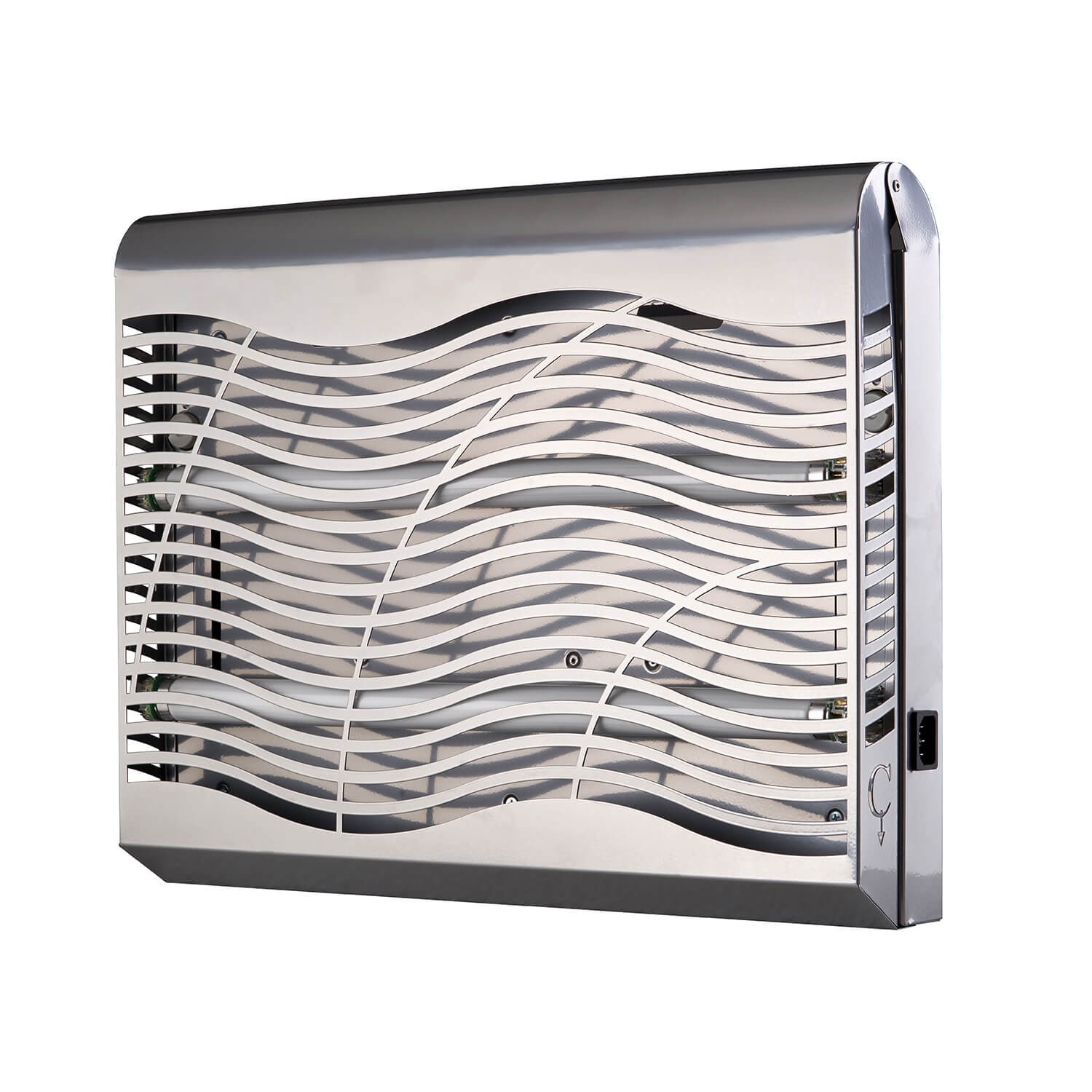 An electric luminous steel trap with a glue plate designed to catch flying insects. Ideal for food preparation areas, it offers easy inspection. Can be wall-mounted or placed on a horizontal surface. Equipped with adhesive board and 2 x 15 W UV-A lamps.