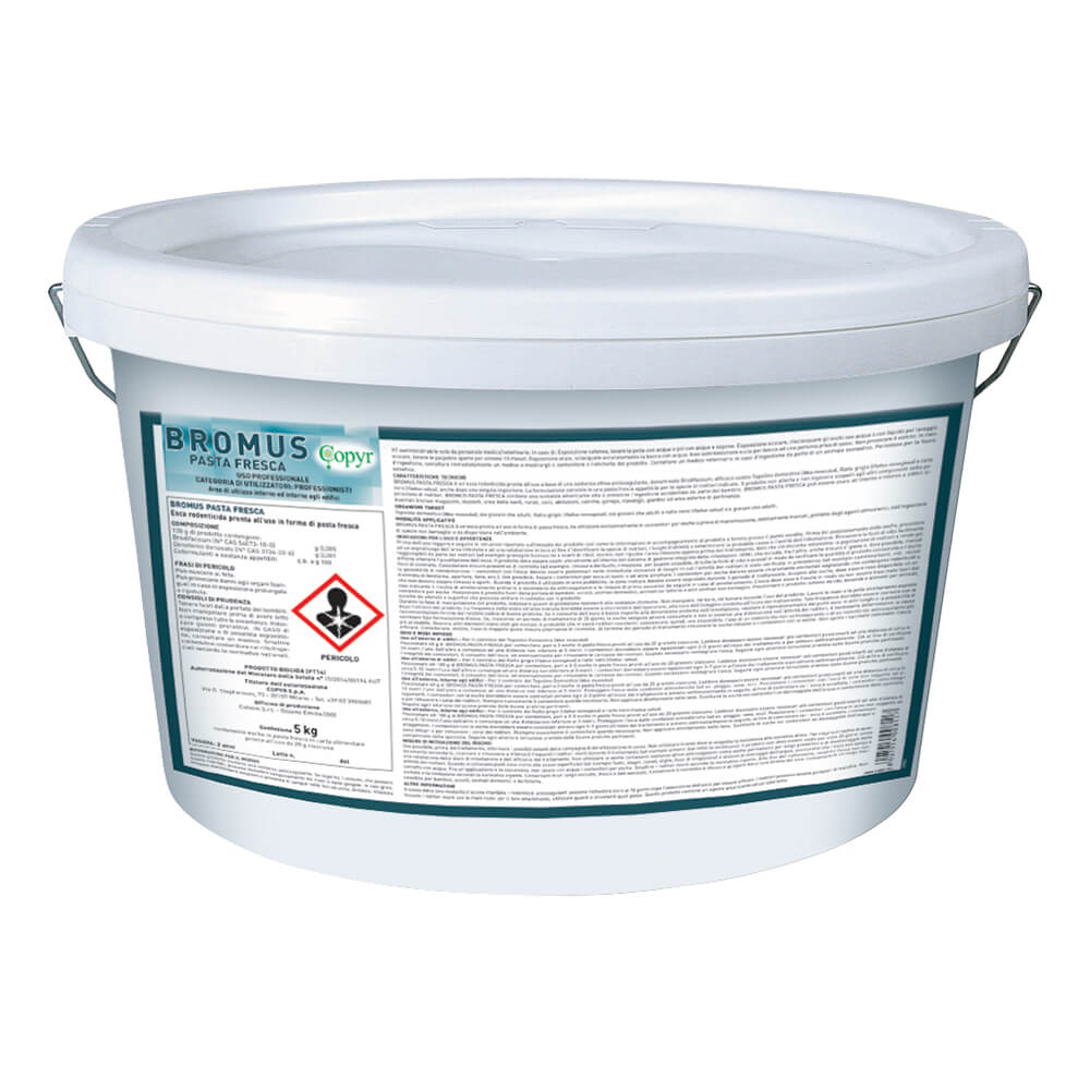 BROMUS PASTA FRESCA es un cebo rodenticida, listo para usar, a base de Brodifacoum, una sustancia activa anticoagulante, que resulta efectiva contra el ratón común o doméstico (Mus musculus), la rata de alcantarilla (Rattus norvegicus) y la rata negra (Rattus rattus), incluso después de una única ingesta. La formulación consiste en una pasta fresca apetitosa para las especies de roedores indicadas. El producto no alarma ni suscita sospechas entre los otros miembros de la población de roedores. BROMUS PASTA FRESCA contiene una sustancia amarga idónea para prevenir la ingestión accidental por parte de los niños. BROMUS PASTA FRESCA se puede usar en el interior y alrededor de edificios industriales (incluidos los almacenes, los depósitos y las bodegas de los barcos), rurales, públicos, viviendas, sótanos, garajes, trasteros, jardines y espacios exteriores pertinentes.