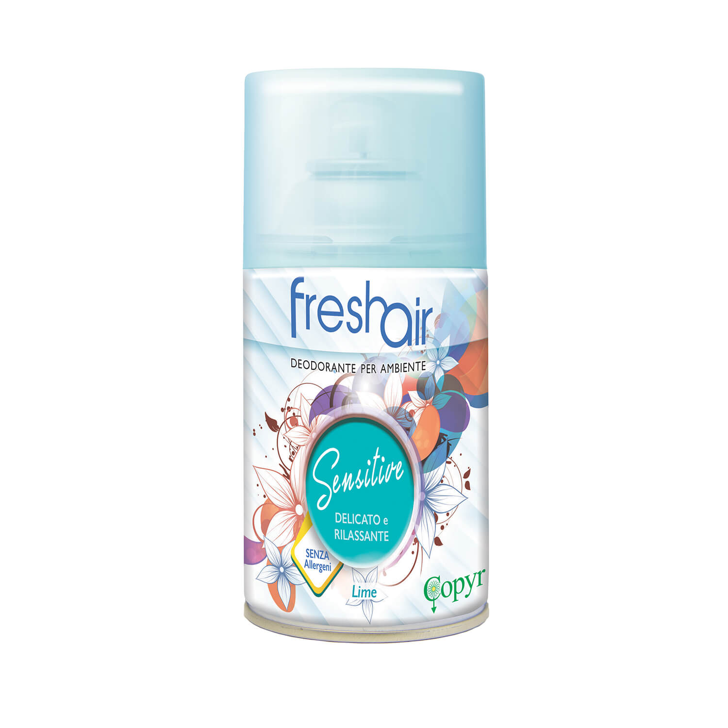 FRESH AIR SENSITIVE LIME es un desodorante en aerosol con dispensador automático COPYR, para espacios interiores.