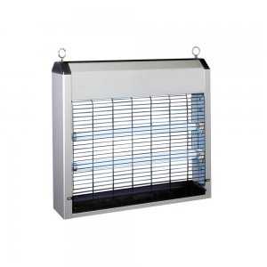 Trampa electroluminosa de metal pintado para insectos voladores.