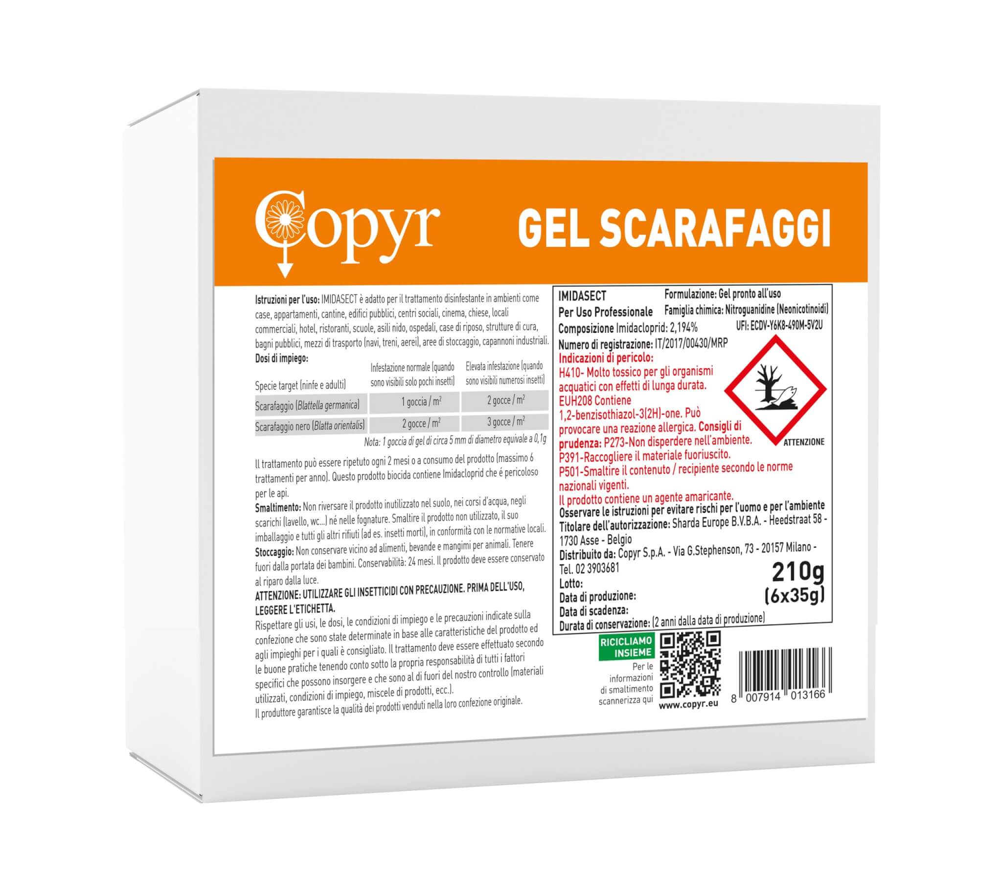 Esca insetticida in gel contro scarafaggi. Per uso professionale.