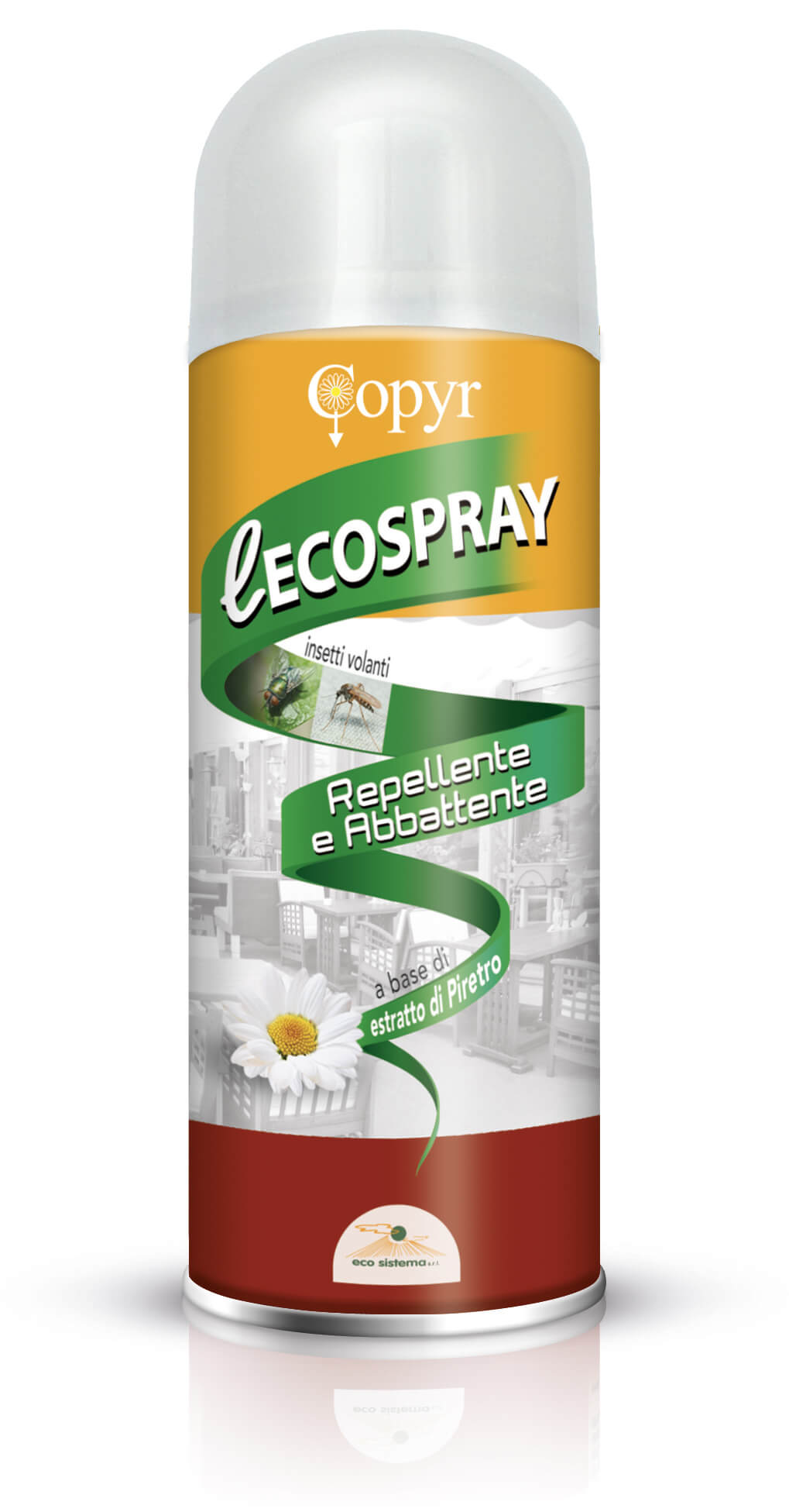 lECOSPRAY è un’insetticida aerosol per uso domestico e civile, per l’applicazione con erogatore automatico. lECOSPRAY è un’insetticida studiato per la lotta contro mosche e zanzare ed insetti volanti in genere. lECOSPRAY impedisce la reinfestazione degli ambienti, grazie al potere repellente del piretro che tiene lontano gli insetti volanti.