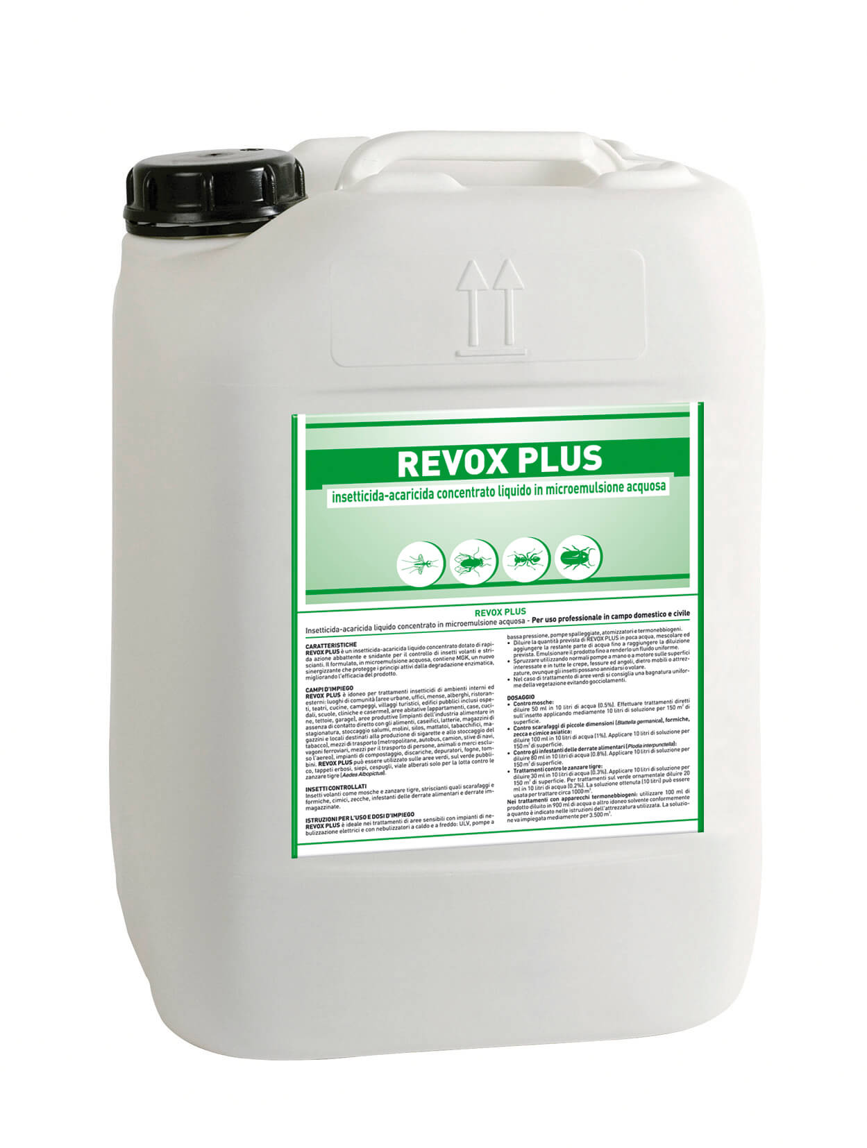 REVOX PLUS è idoneo per trattamenti insetticidi di ambienti interni ed esterni: luoghi di comunità (aree urbane, uffici, mense, alberghi, ristoranti, teatri, cucine, campeggi, villaggi turistici, edifici pubblici inclusi ospedali, scuole, cliniche e caserme), aree abitative (appartamenti, case, cucine, tettoie, garage), aree produttive (impianti dell’industria alimentare in assenza di contatto diretto con gli alimenti, caseifici, latterie, magazzini di stagionatura, stoccaggio salumi, molini, silos, mattatoi, tabacchifici, magazzini e locali destinati alla produzione di sigarette e allo stoccaggio del tabacco), mezzi di trasporto (metropolitane, autobus, camion, stive di navi, vagoni ferroviari, mezzi per il trasporto di persone, animali o merci escluso l’aereo), impianti di compostaggio, discariche, depuratori, fogne, tombini. REVOX PLUS può essere utilizzato sulle aree verdi, sul verde pubblico, tappeti erbosi, siepi, cespugli, viale alberati solo per la lotta contro le zanzare tigre (Aedes Albopictus).