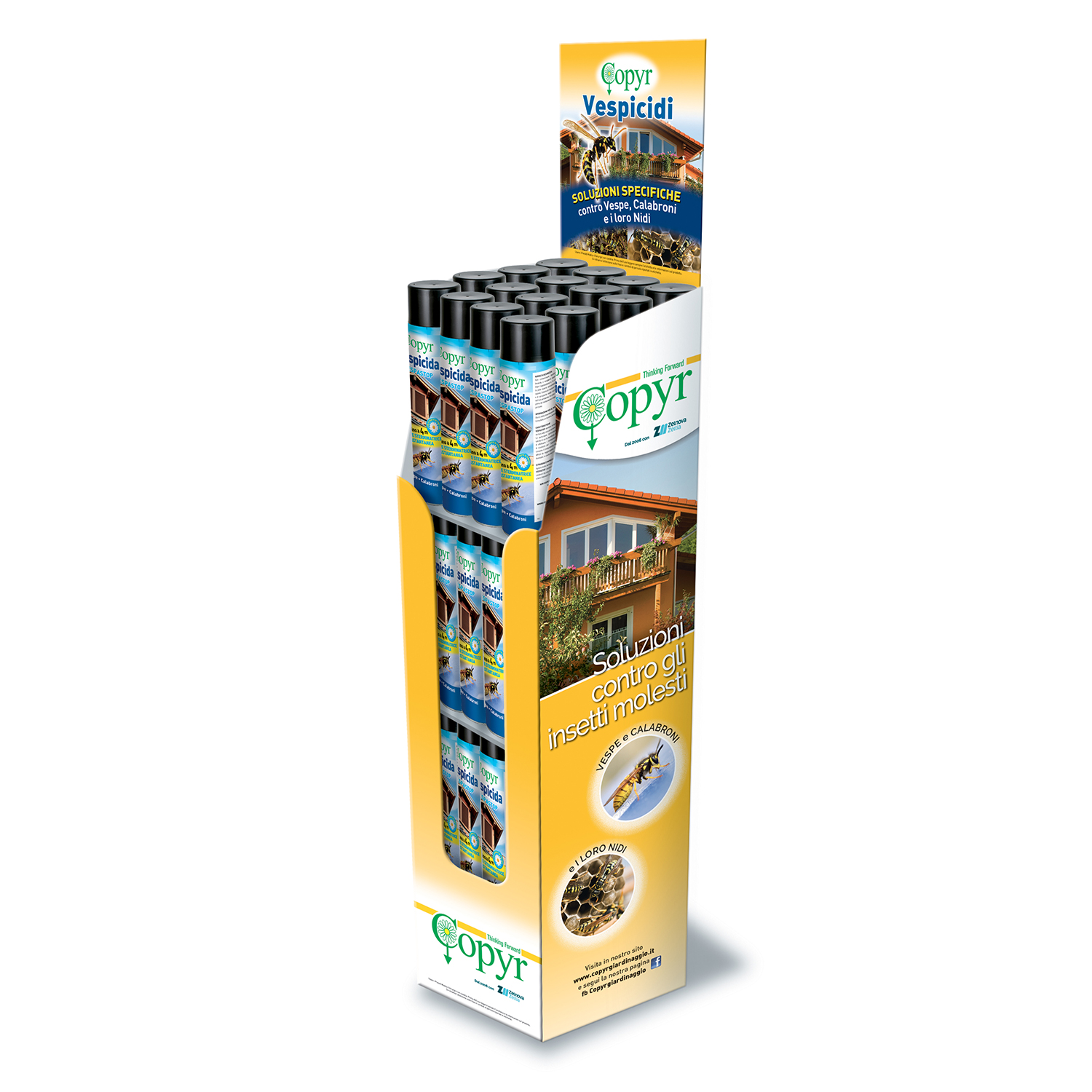 VESPASTOP elimina vespe e calabroni anche nei loro nidi, con un’azione istantanea. La particolare formulazione e la speciale valvola di cui la bombola è dotata permettono di effettuare i trattamenti da una distanza di sicurezza per l’operatore. Inoltre questo consente il trattamento dei nidi normalmente difficili da raggiungere (nei sottotetti, sotto i davanzali, in cavità del muro, ecc.)